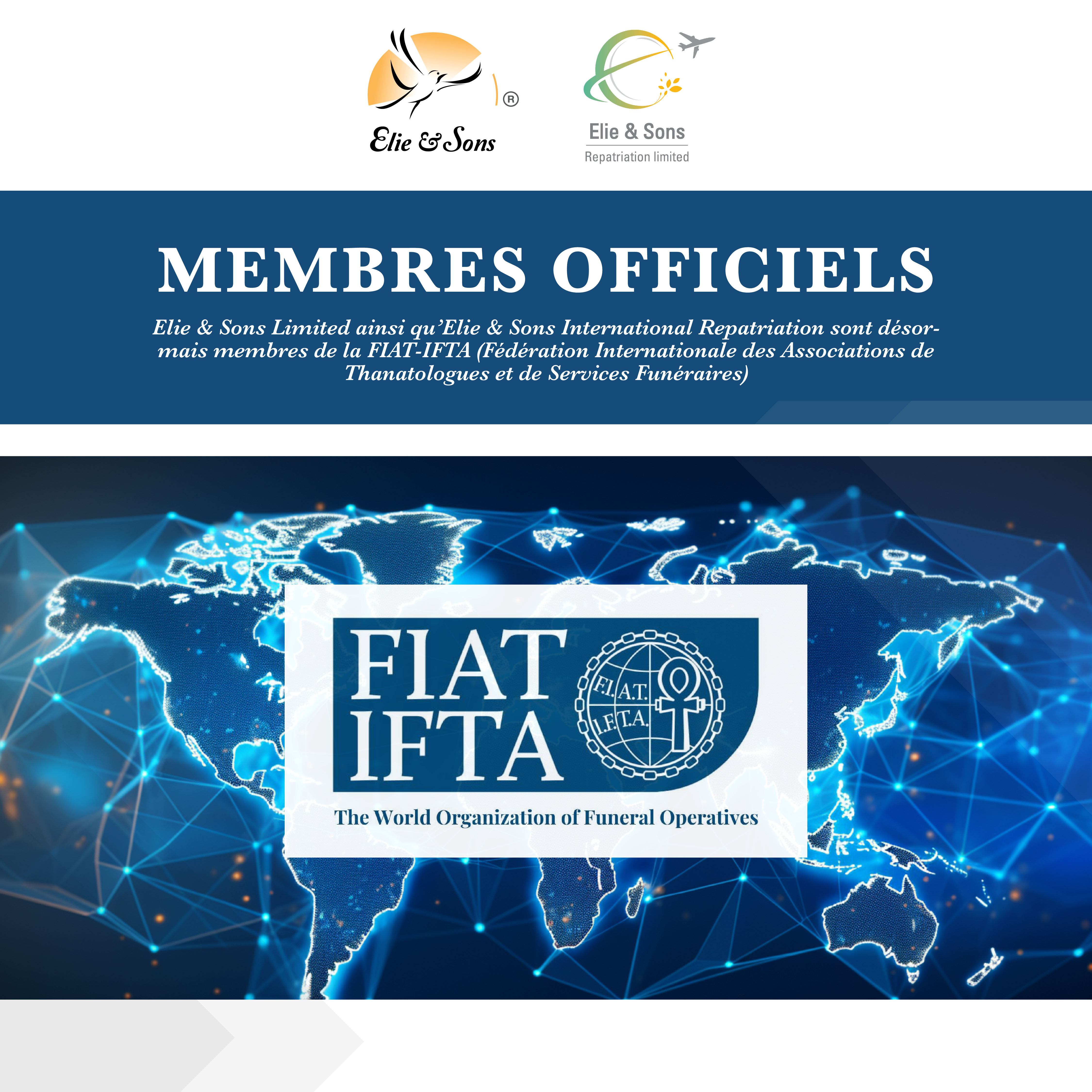 Je profite de ce message pour féliciter toute l’équipe de Elie and Sons. Je parle bien évidemment : depuis l’arrivée à l’aéroport, l’équipe transfert, l’équipe de la morgue, le planning, l’équipe rapatriement, les SFRs, la communication, les fleuristes, l’équipe de la Chapelle et toute l’équipe enterrement. J’espère n’avoir oublié personne. 🙏 You did an amazing job 👏🏻 Merci de passer le message à vos équipes respectives